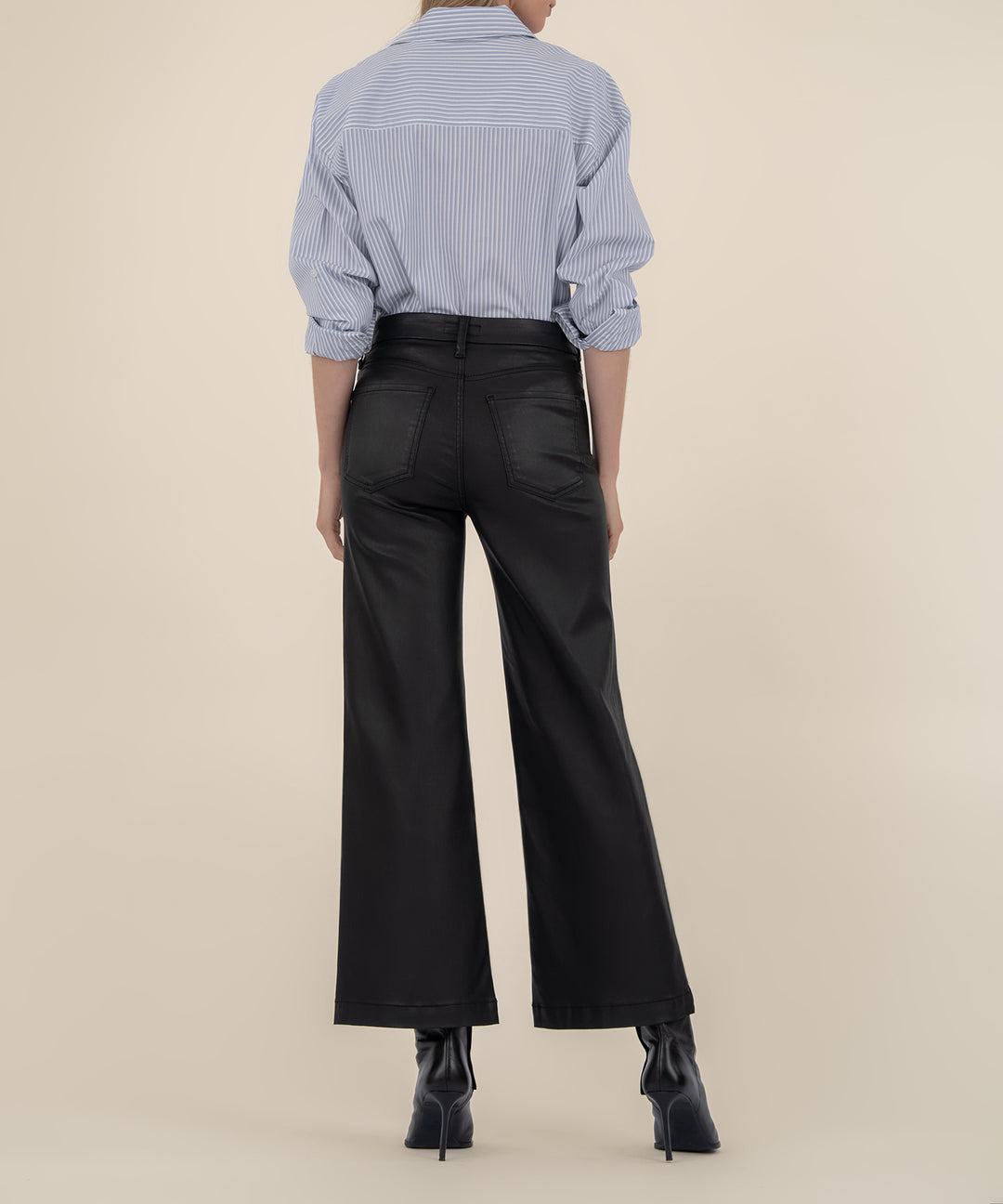 Stand out in these coated wide-leg jeans made with ankle-grazing hems and Fab Ab front pockets that comfortably shape and smooth with raw hems in a long inseam. The Meg has a high rise, wide leg silhouette that hits at the ankle.