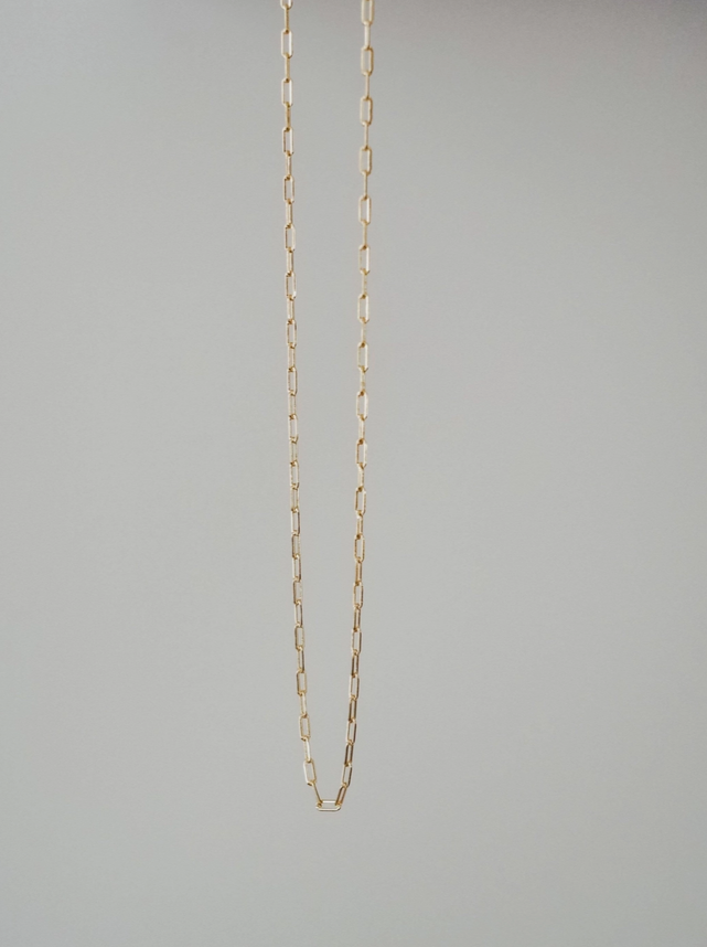 The Petite Paperclip Necklace, crafted from 18k gold filled material, combines durability with a sophisticated design. Its lightweight construction ensures a comfortable fit, while the sleek, elongated paperclip links add a modern, minimalist flair. Whether you're dressing up or down, this delicate piece is the perfect way to add a subtle sparkle to your everyday look.